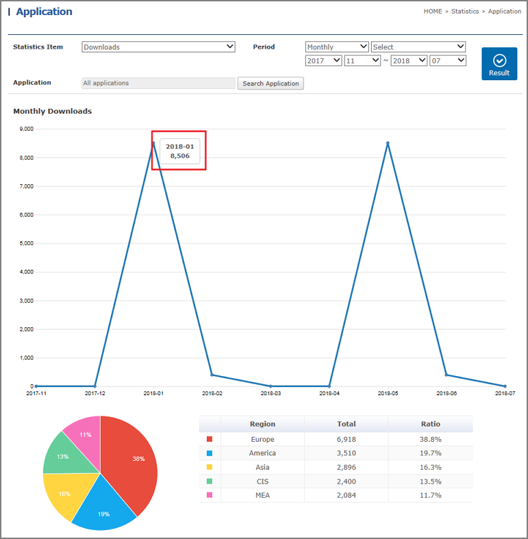 We'd like to inform you that the Statistics menu in Seller Office has been improved as described below. We hope the improved Statistics menu will help you manage your applications and establish marketing strategies more easily.